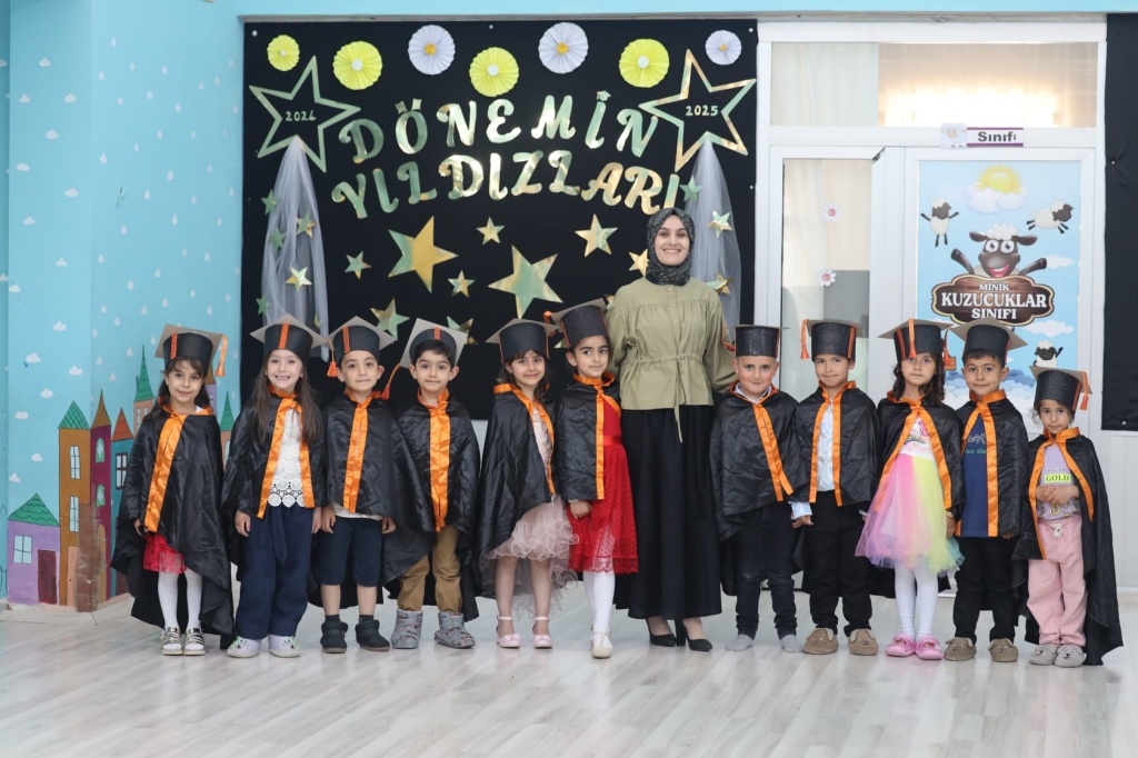 Bugün, gözlerimizin önünde büyüyen, oyunlarla, kahkahalarla, masallarla dolu koca bir yılı geride bırakıyoruz. Minik elleriyle hayatımıza sevgi katan öğrencilerimizi, anaokulundan mezun etmenin hem mutluluğunu hem de tatlı bir hüznünü yaşıyoruz. Daha dün gibi… İlk gün gözleri biraz endişeyle bakan, annesinin elini sıkıca tutan o minik çocuklar, bugün vedaya hazır, özgüvenli bireyler olarak karşımızdalar. Her birinizin yüreğinde kocaman bir sevgi, aklında yepyeni hayaller var artık. Bu yıl boyunca yalnızca harfleri, sayıları değil; paylaşmayı, sabretmeyi, dinlemeyi ve dost olmayı da öğrendiniz. Şimdi yeni bir yolun eşiğindesiniz…